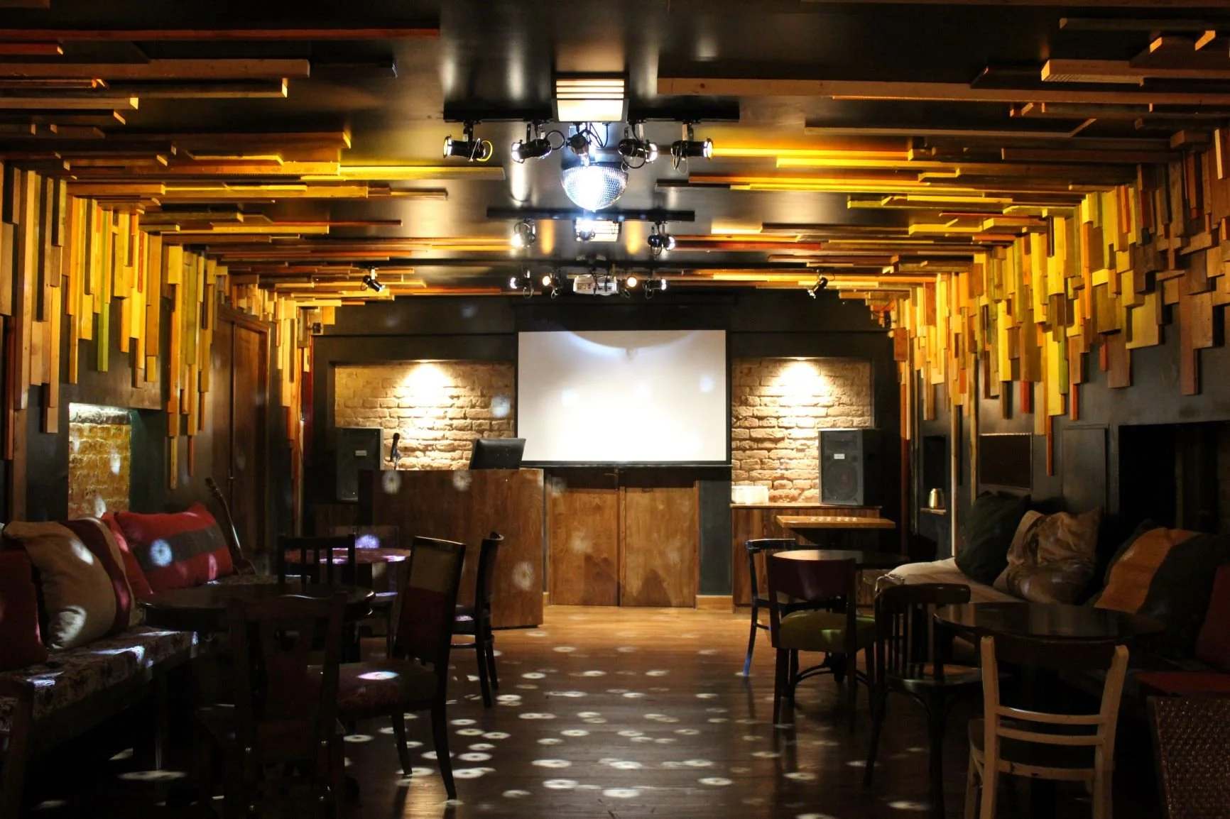 Add some sonic sparkle to your event by booking The Music Room; an exclusive 'snug' tucked within The Workshop's that supplements our principle offering. This space can serve as a screening room for presentations, meetings or film screenings.
